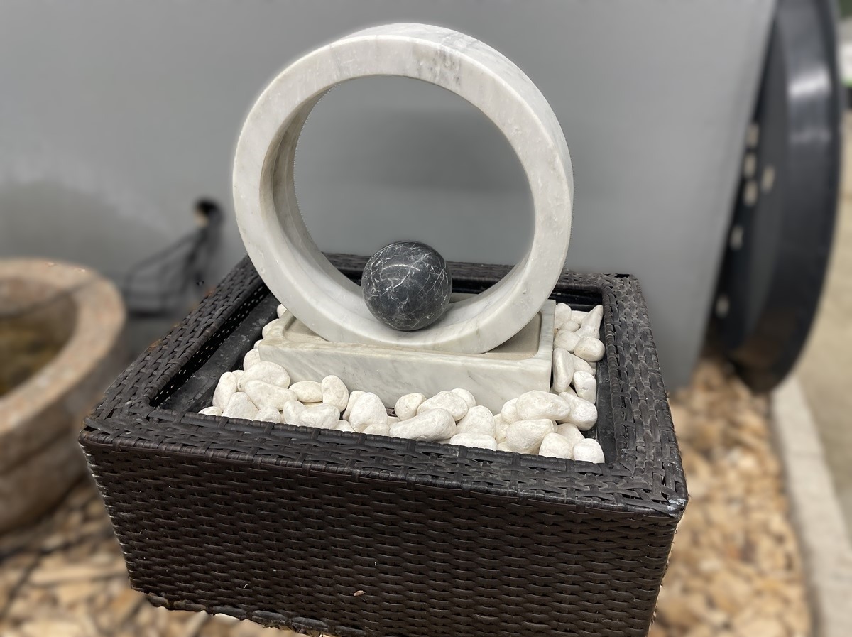 Flot og dekorativ vandsten, som har den funktion at pumpens/vandets kraft får marmorcirkel og kuglen til at rotere - dog skal man have en god fingersnilde for at dette kan lykkedes. Dette er derfor det rette produkt til personen, der tør at tage udfordringen op; derfor denne gode pris!