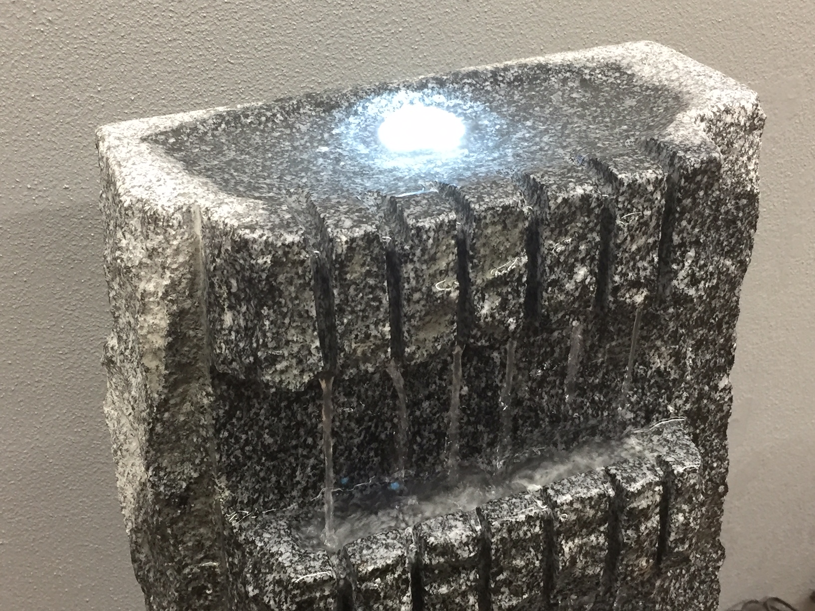 Superflot og enkelt vandsten med dejlig lyd af vandfaldet, der løber lige så stille ned i bassinet og recirkulerer.