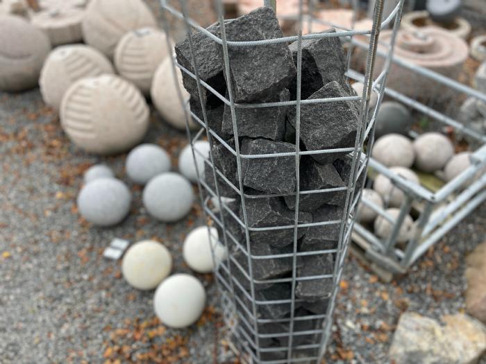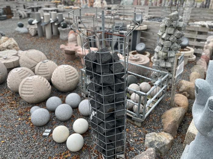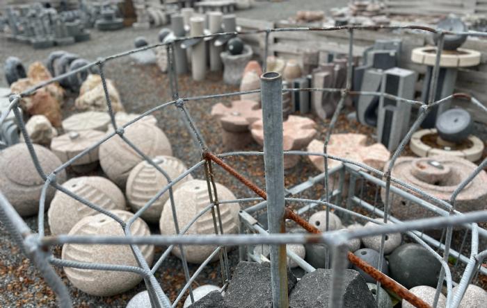 Søjlerne kan tilkobles en vandstenspumpe og vandet vil strømme ud af top på røret der er i midten.