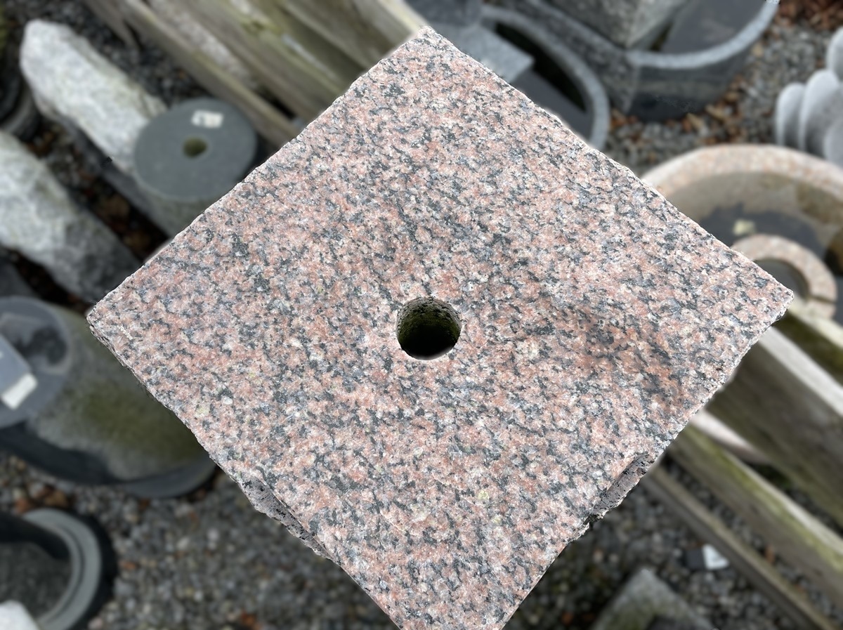 Vandstenen har polerede detaljer, der frembringer den røde granits farvevariation.
