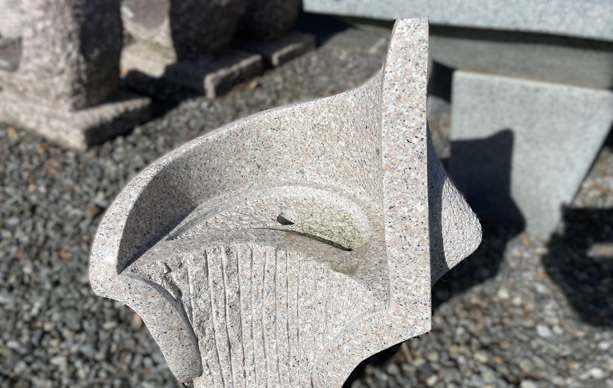 Vandsten ligner næsten en konkylie eller en siddeplads, man kan nyde i solen og vil være et velegnet element til haven, hvor vandmiljø er i fokus. Vandstene har store polerede overflader, der frembringer granittens flotte rosa farvespil og står i god kontrast til de rå detaljer.