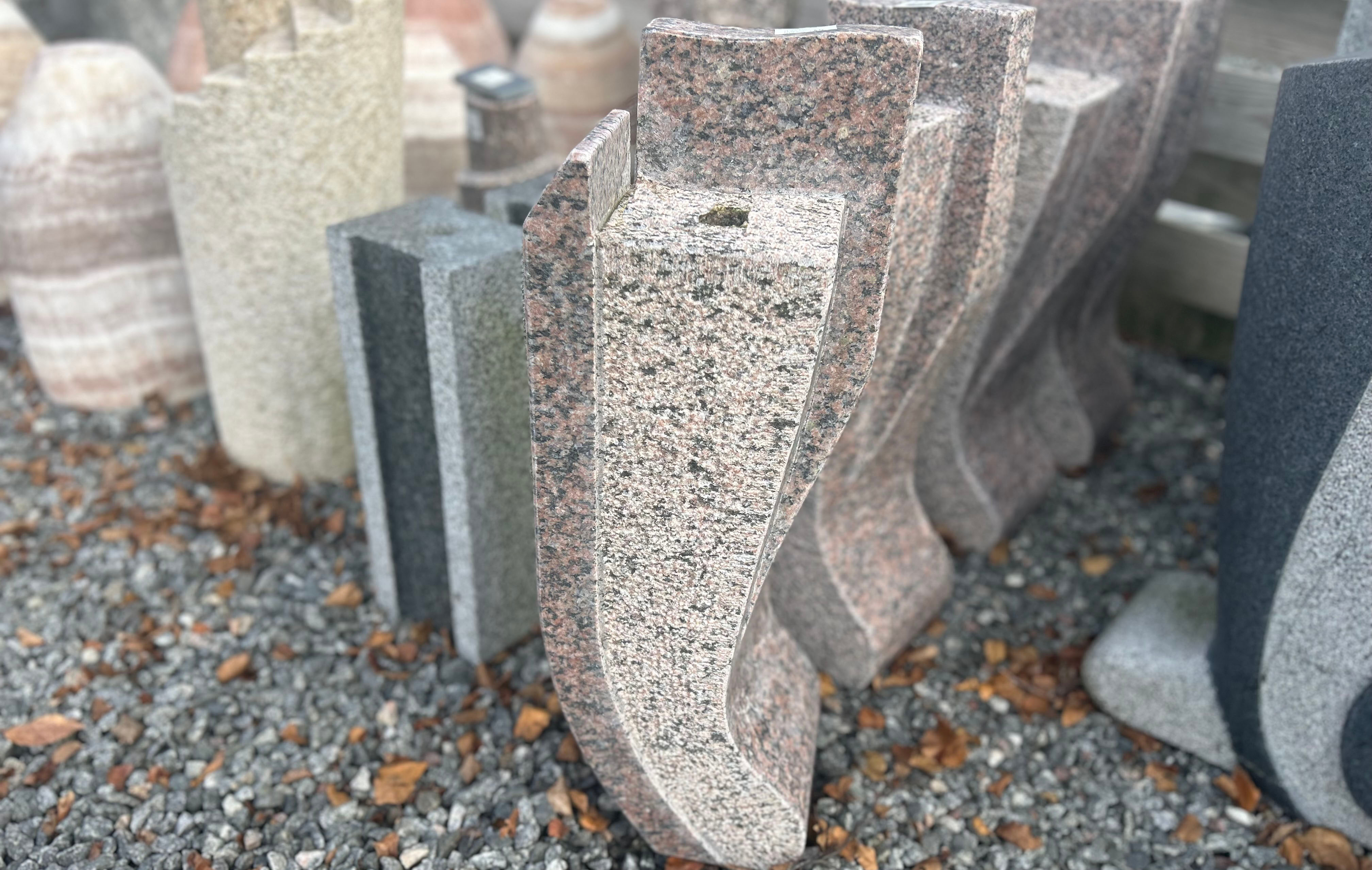 Vandsten Buet Facon i rød granit med poleret og stokhugget (grov) overflade.