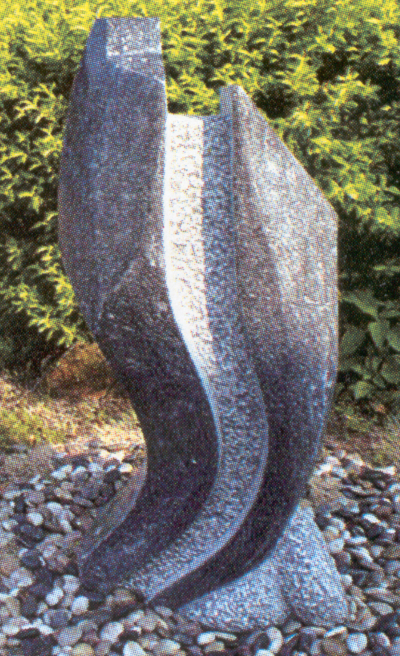 Vandsten Fiskefacon i gråsort granit med poleret overflade på ydersiden, mens midterdelen står mere naturlig.