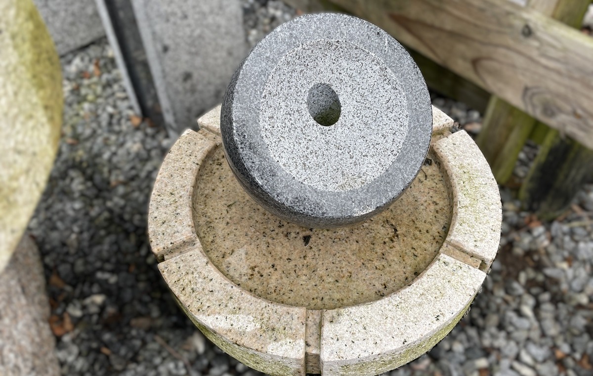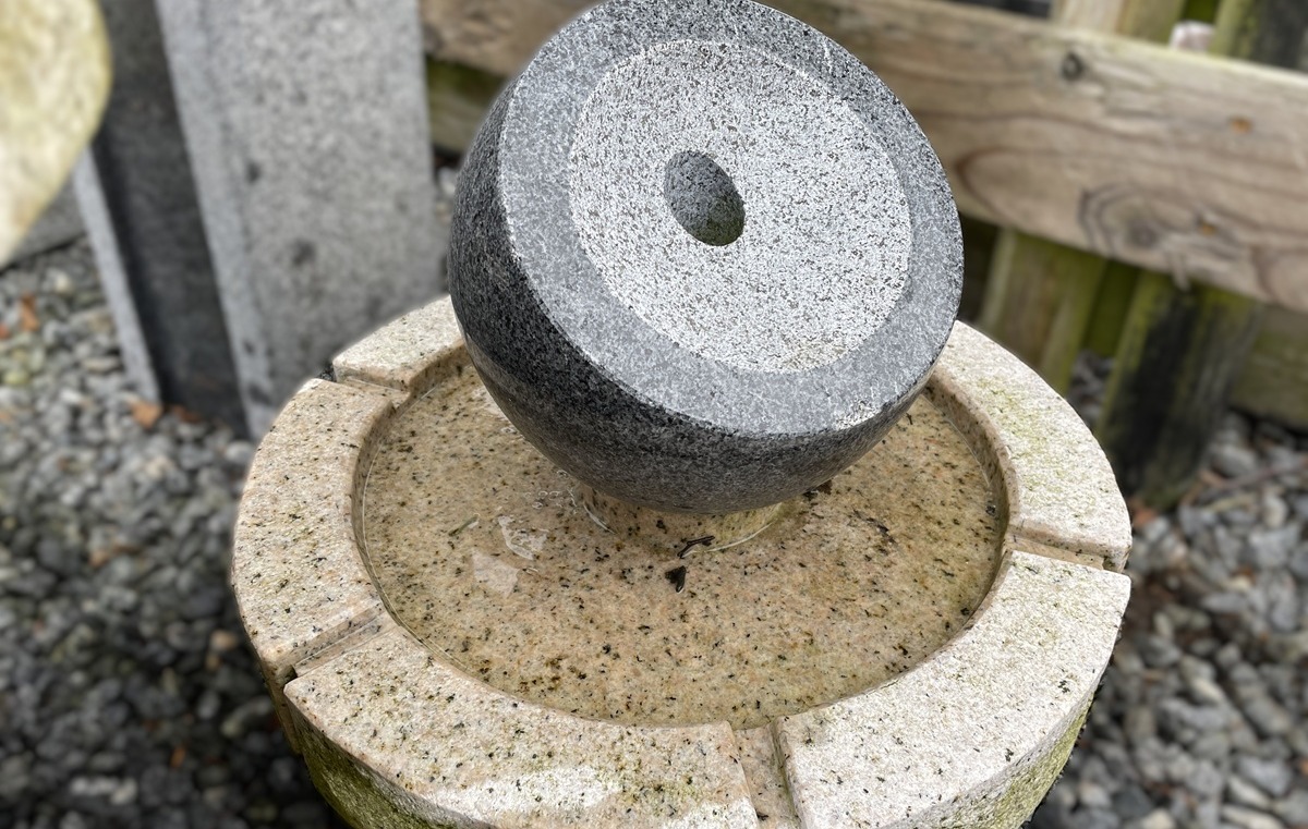 Den gule og gråsorte granit står i flot kontrast mod hinanden og skaber et spændende udtryk. Et velegnet element til at skabe et hyggeligt vandmiljø ved hus og have.