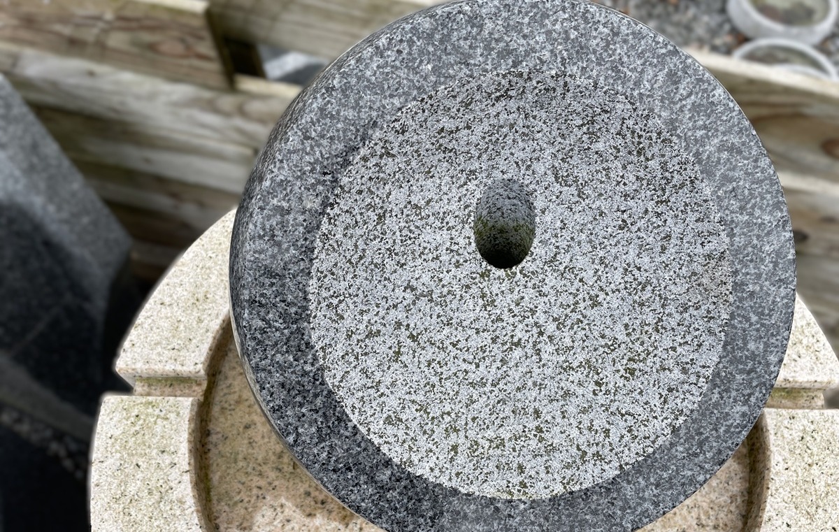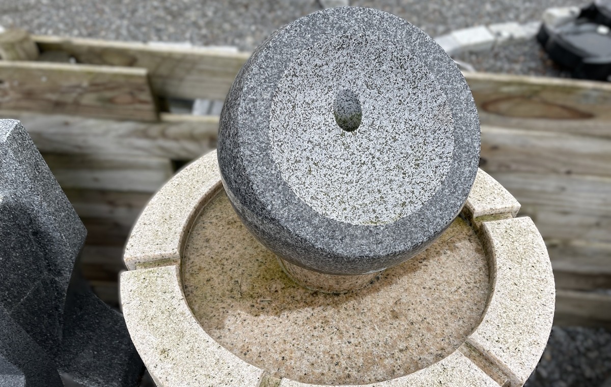Vandsten i granit med halvkugle på toppen.