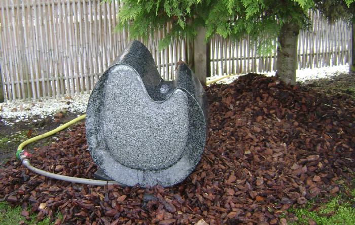 Vandsten lavet i gul eller gråsort granit. Store polerede overflade frembringer et flot og nuanceret farvespil som skaber liv til vandstenen. Perfekt dekorationselement ved terrassen eller i hyggekrogen af haven.