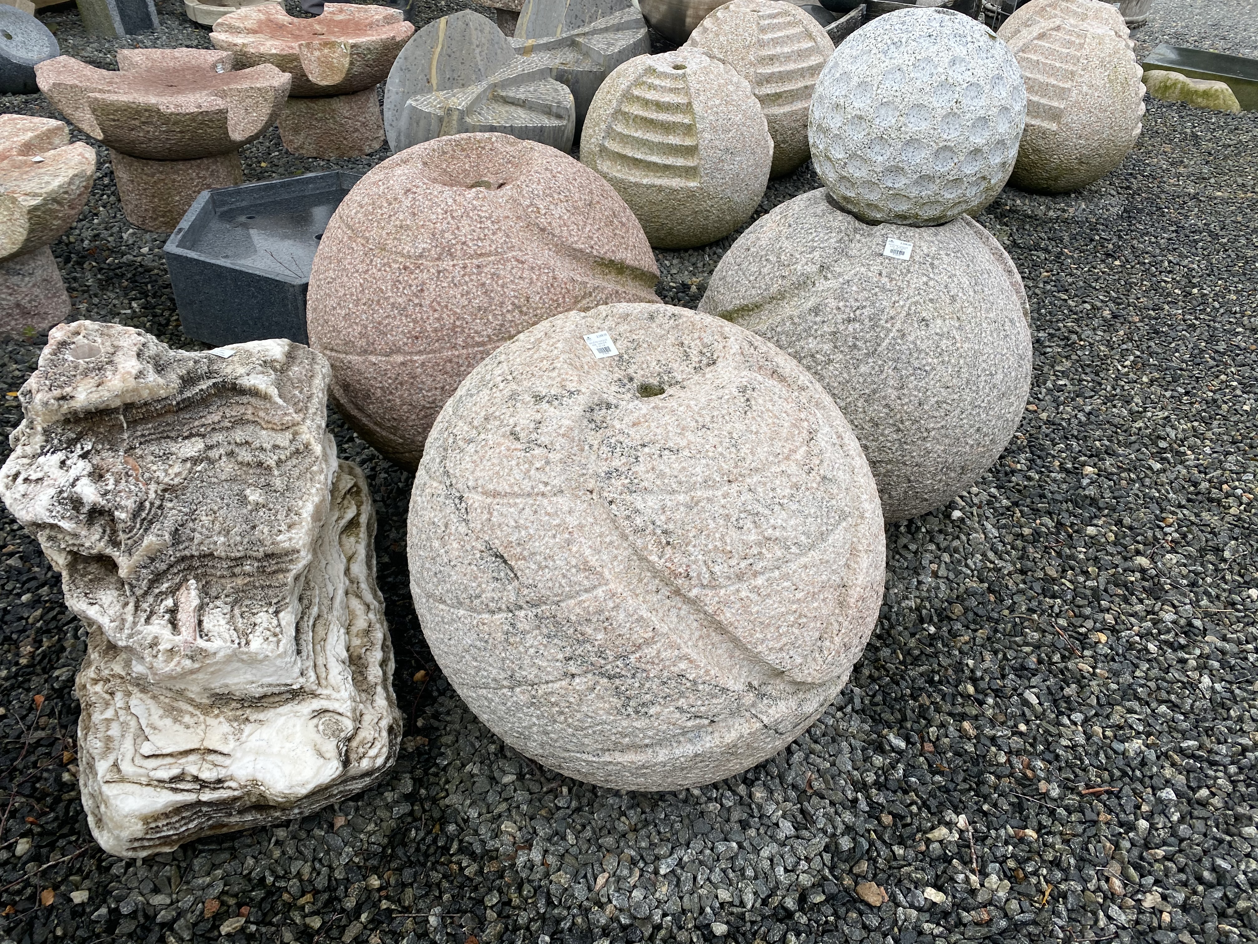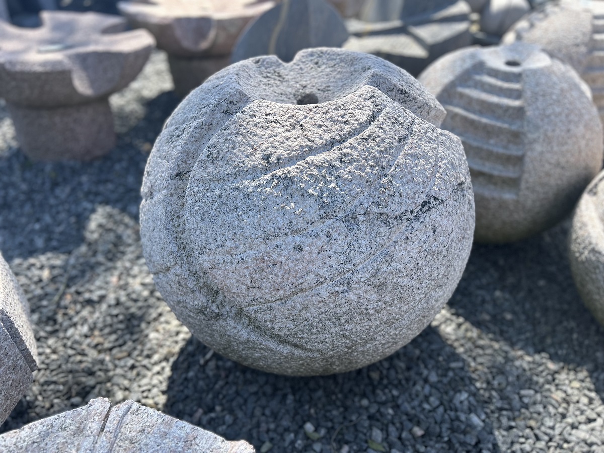 Vandsten i rødlig indisk granit med form som en petanquekugle. Denne store flotte vandsten er perfekt i den store have, der kan klare en vandsten med lidt fylde. Når vandet løber over stenen, vil det risle i de krydsende riller og ned over den ru overflade. Stenen er ikke velegnet til selve spillet petanque, men er du en entusiastisk petanquespiller kan vandstenen lede tankerne hen på din hobby. Vand i haven er med til at skabe ro og balance, som man får brug for til et spil petanque.