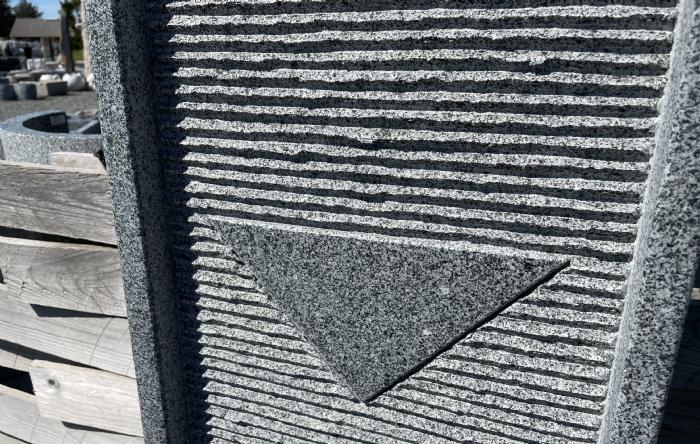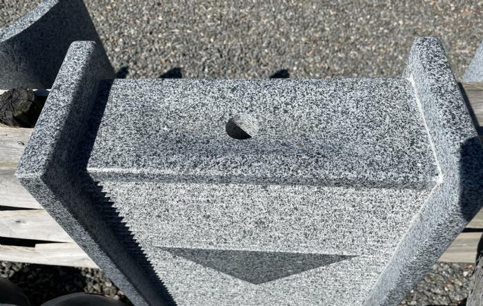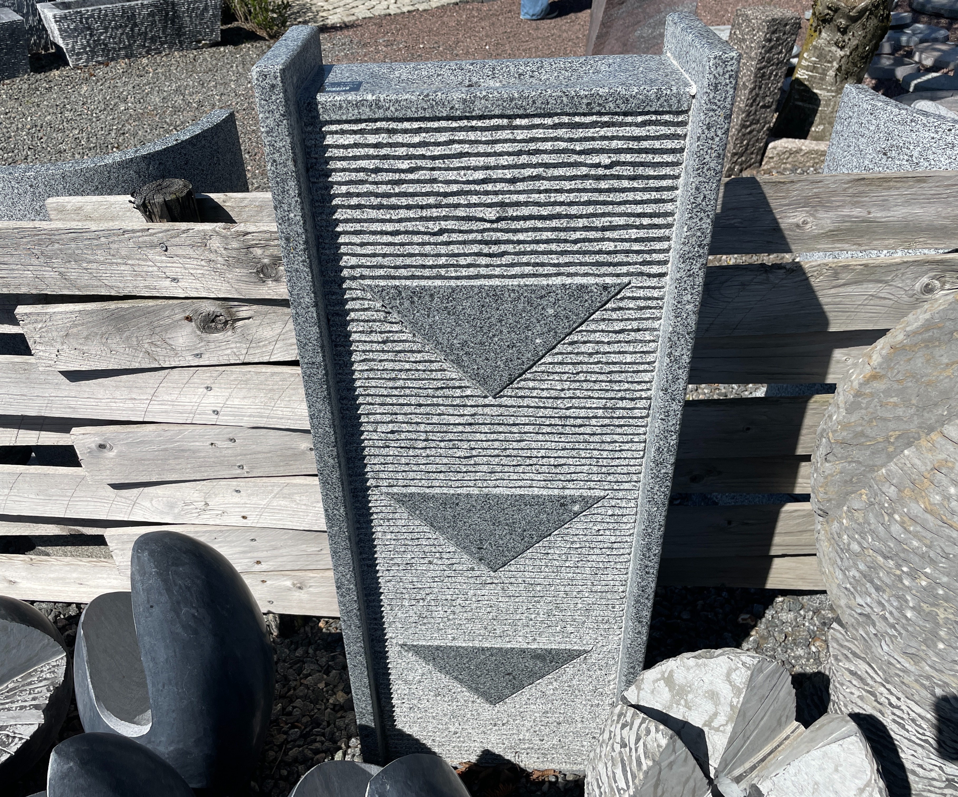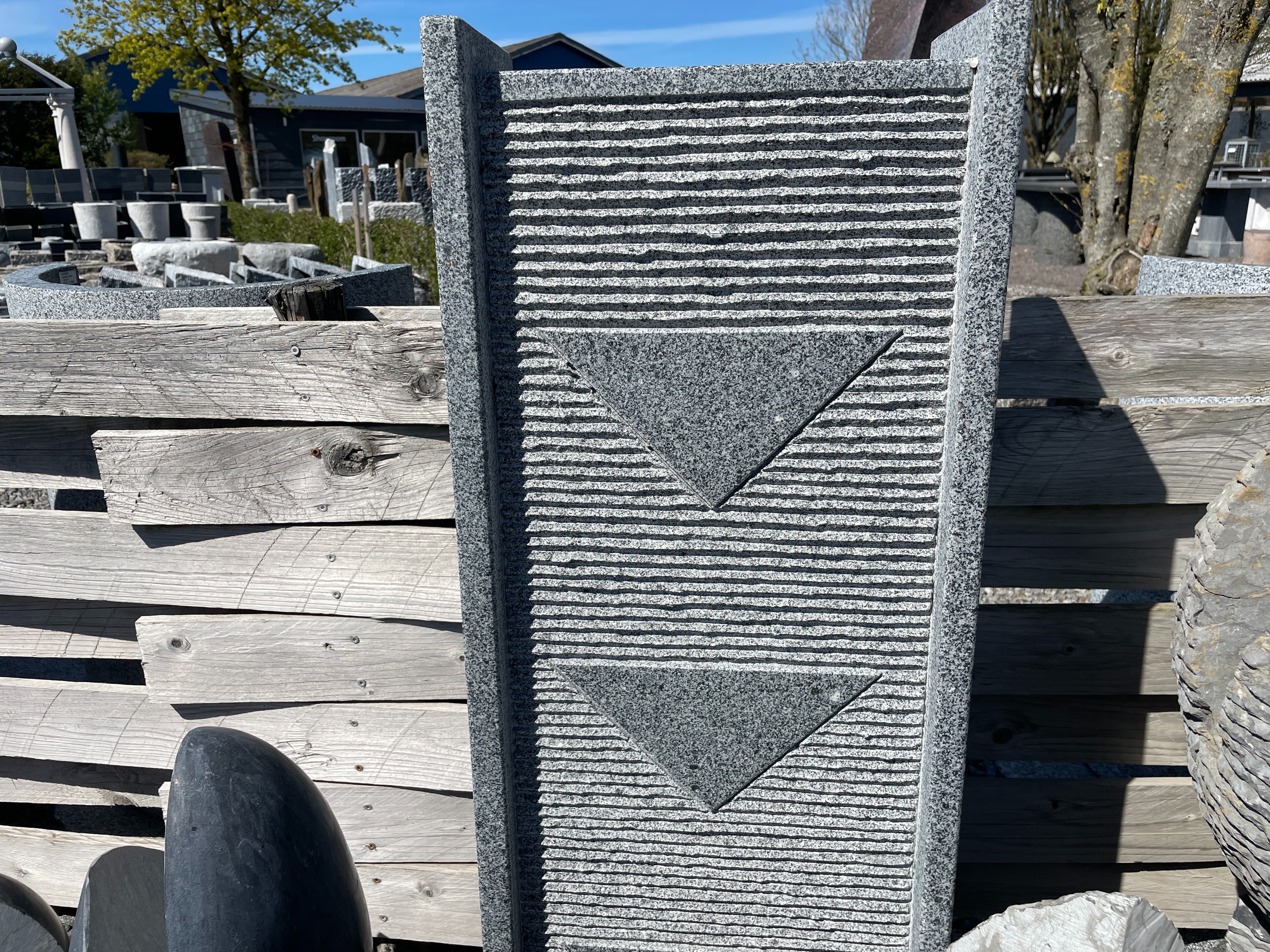 Vandsten Slim produceret i gråsort granit med polerede detaljer.