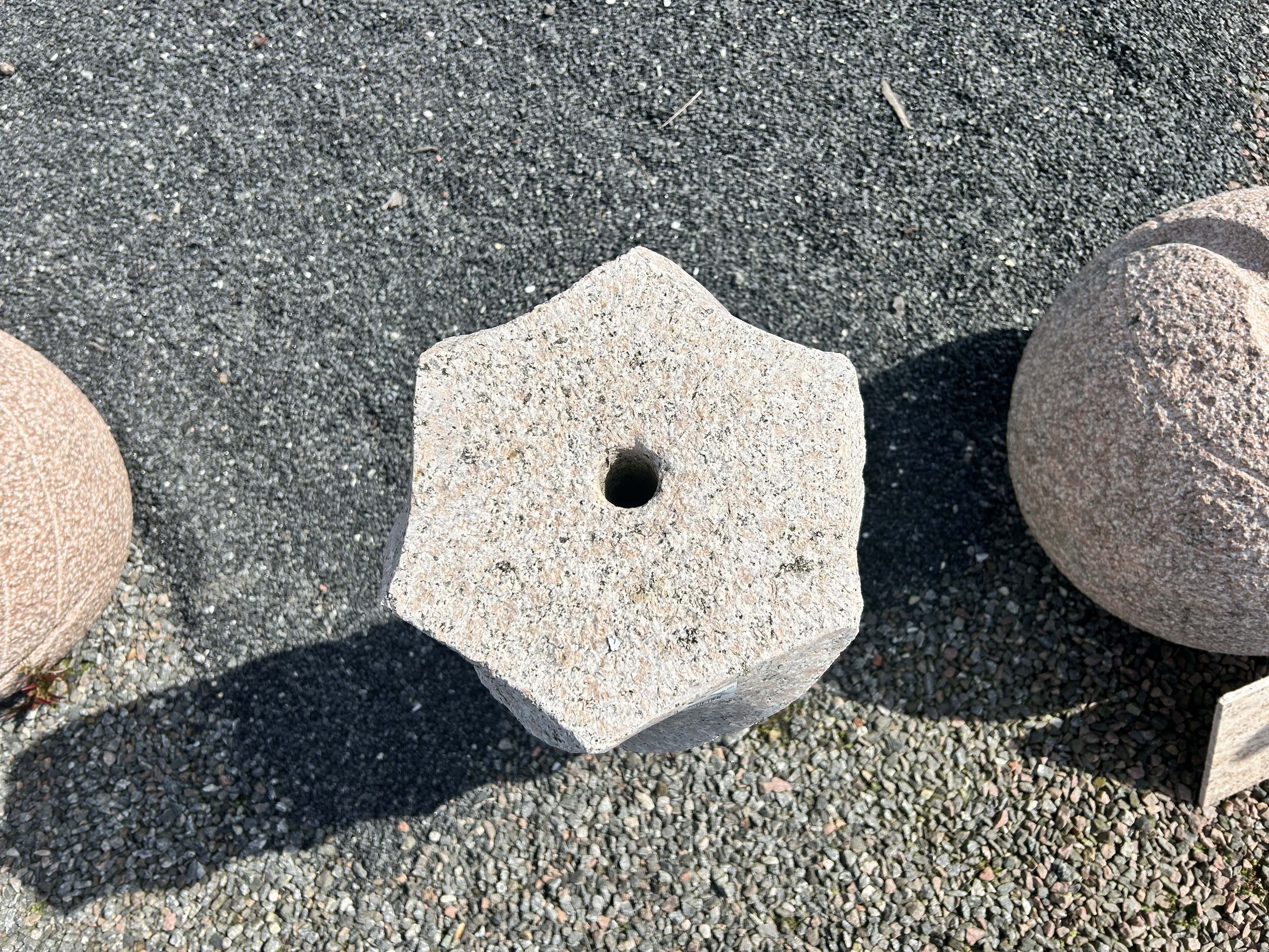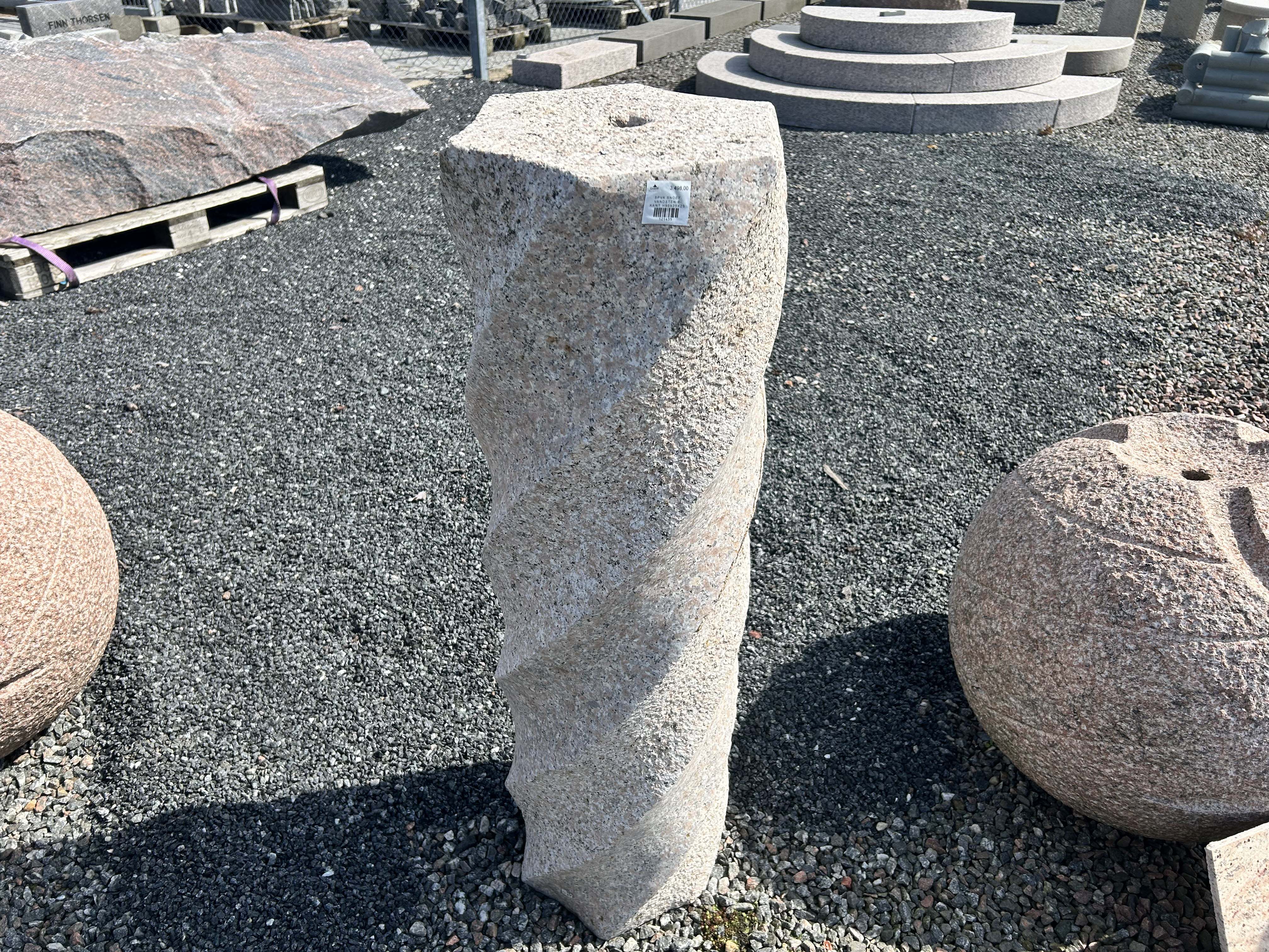 Vandsten Snoet i rosa granit med ru overflade. Vandstenen måler ca. H90 x 25 x 25 cm.