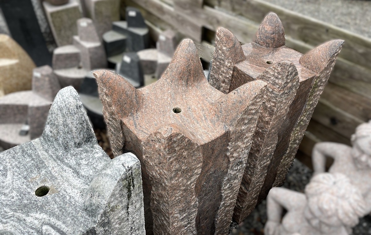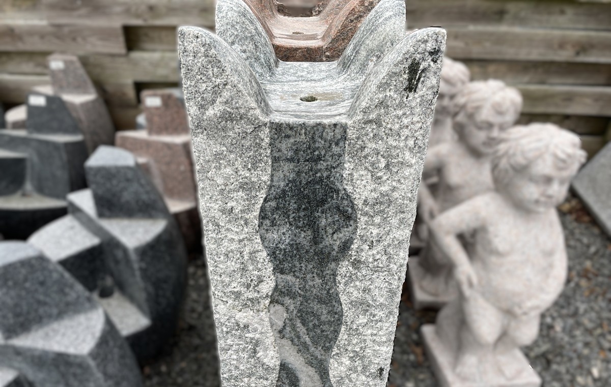 Vandsten lavet i to typer granit kaldet grå kuppam og rød multicolor - to granittyper der har flotte varierende farvespil og giver liv til vandstenen. De polerede og ellers rå overflader skaber en spændende kontrast.